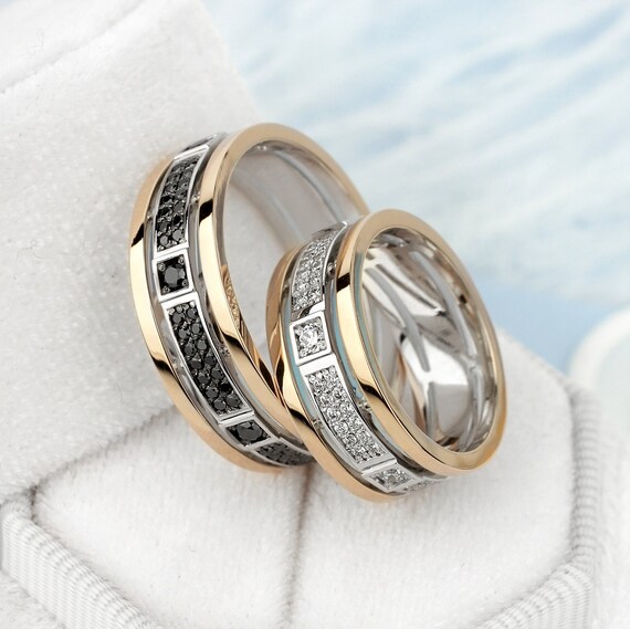 Gold Wedding Bands With Black And White Diamonds Unique Etsy